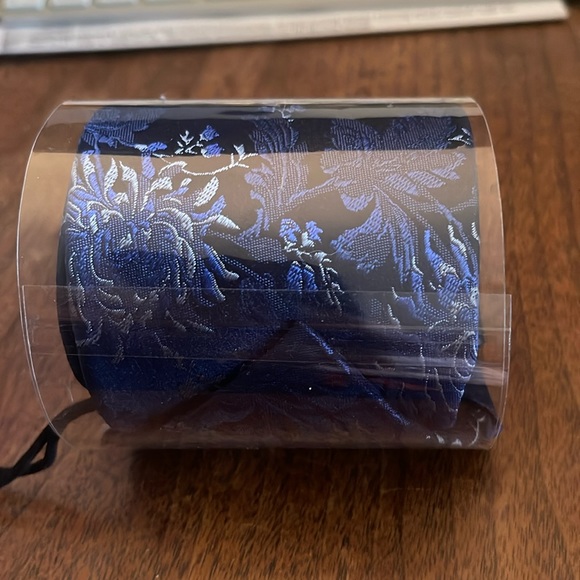 Silk necktie, beautiful shades of blue with black and white touches. W30” x L60”. Pure silk fabric