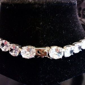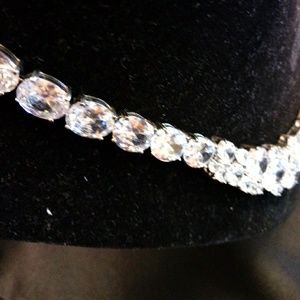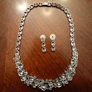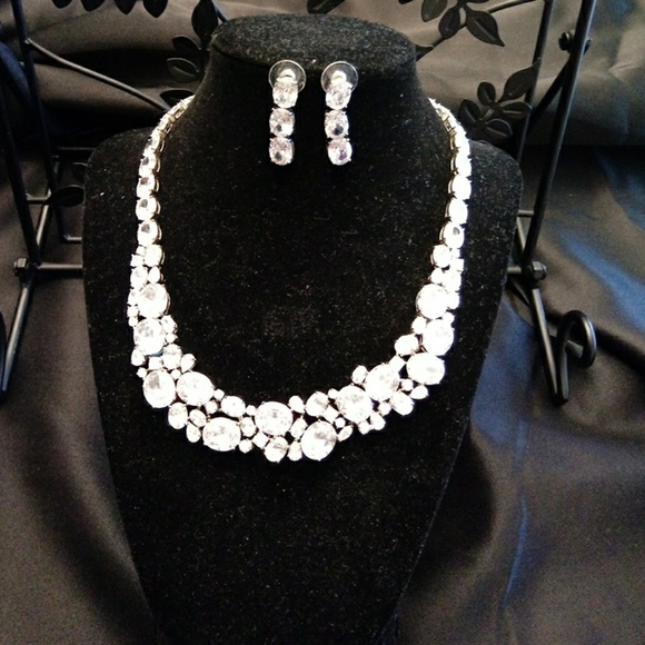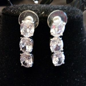 16"length, earrings 1 1/4 long, earrings drop 3/4 long. Earrings are post with 3 CZ stones each. Necklace has a double lock on back.
