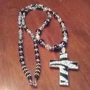 3 inch black and crystal cross with 34 inch necklace