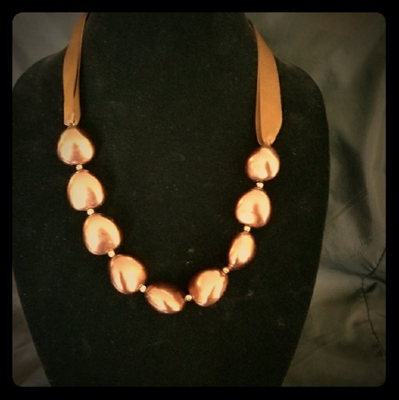 Bronze tone neclace with satin ribbon