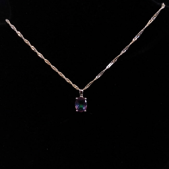Sterling silver 18in chain w/oval mystic topaz pendant