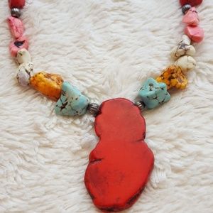 Handmade multicolored high-quality man-made turquoise necklace and bracelet with patina metal clasps. No real flaws all are there for the effect of the "antiqued western look". Let's negotiate through the offer button or add to a bundle by itself or with multiple items (to save money on shipping) and I will make you an offer. Let's negotiate through the offer button or add to a bundle by itself or with multiple items (to save money on shipping) and I will make you an offer. N1