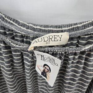 Nectar Audrey 3+1 Gray White Striped Off Shoulder Cotton Blend Mini Dress Medium