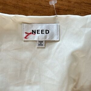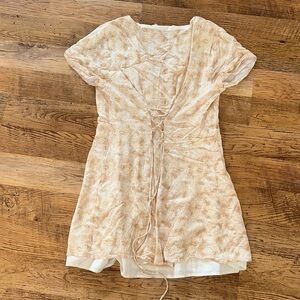 Need Tan Dainty Patterned V Neck Short Sleeve Button Up Tie Back Dress A6