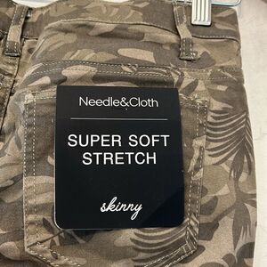 Needle & Cloth leaf pattern army green skinny ankle pants Size 6 New