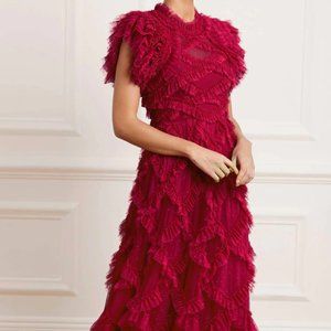 Brand new Needle & Thread Genevieve Ruffle Gown with tags. Unfortunately, the event I was going to wear it for was canceled and I was unable to return it as I had already thrown away the original packaging. This gown is a US 2, but fits closer to a US 0.