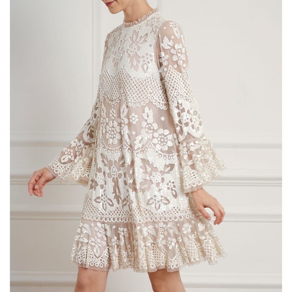 Needle & Thread Snowdrop Mini Dress - Beige