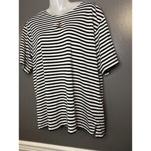 Needle & Threads Shirt Womens XL Black White Striped Nautical Anchor Embroidered