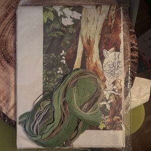 Needle Treasures cross stitch kit featuring a raccoon pair. Includes a detailed design with vibrant colors. NOS Vintage maddening the USA.