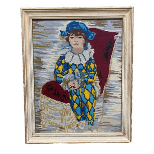 Needlepoint Artwork Picassos Son Paul Harlequin in Costume.