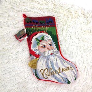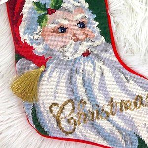 Needlepoint Beaded Santa Stocking New Meier & Frank