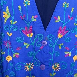 Vibrant Indigo Purple vest with colorful needlepoint embroidery
