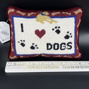 Needlepoint I Love Dog Spell Out Wool/Velvet Red Art Mini Pillow Decor