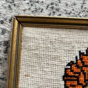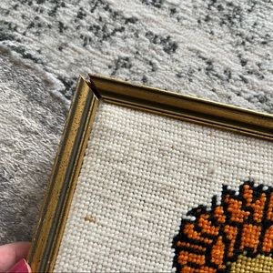 Really cute classic vintage hugging Raggedy Ann and Andy handmade needlepoint wall hanging. Ivory background in a distressed vintage gold frame. Frame has some wear and separation that could use some TLC to glue back together. Some discoloration and variation to fabric as this is vintage. Really cute for a nursery or a children’s room. Measures about 12.5” across x 13 1/4” tall. PRICE REFLECTS ANY FLAWS