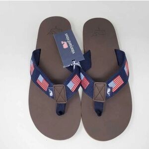 Needlepoint USA flag sandals flip flops men’s leather american vineyard vines