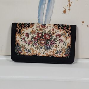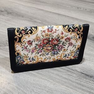 Needlepoint Snap Satin Clutch Bag, no flaws and great texture and pop of Vintage look to any outfit.