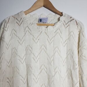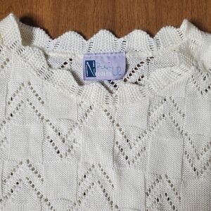 Needles Up Womens Knit Sweater White Boho Fairycore Cottagecore Coastal