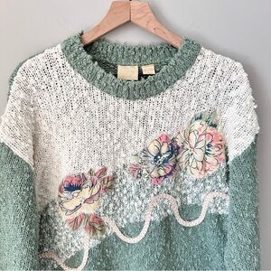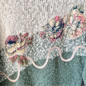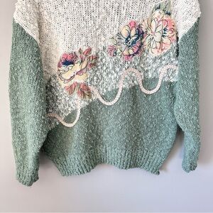 Needles & Yarn Vintage Sweater Large Green Embellished Top Cottage Granny