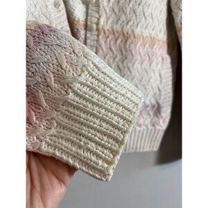 Needlework Sweater Women M Cream Cardigan Striped Knit Y2K Retro Granny 80s