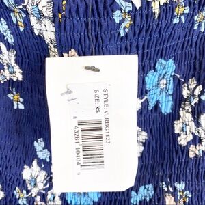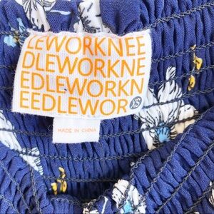 Needlework - strapless floral smocked top pants jumpsuit. Navy with multicolored flowers. Feels like Cottage core or cottagecore style.