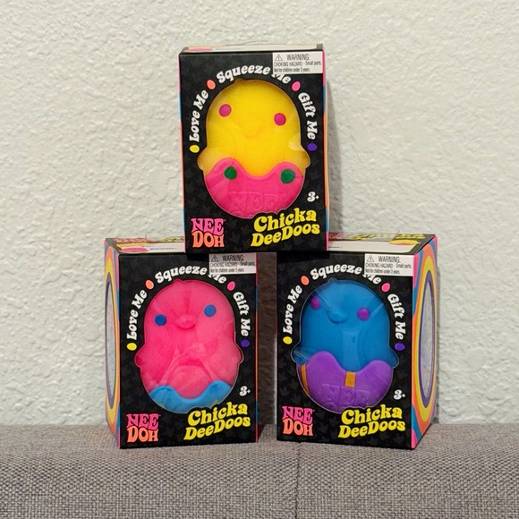 NeeDoh Chicka Dee Doos Easter Squishy Toy 3 pc set. Full set of pink, yellow, purple Chicka De Doos. On hand ready to ship!! This will be the exact item shipped once purchased. I will pack with adequate packing materials to ensure safe arrival. Smoke free & pet free home.