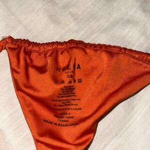 This cheeky style bikini bottom sits high on the hip and features a tunneled waistband that can be adjusted for custom coverage.