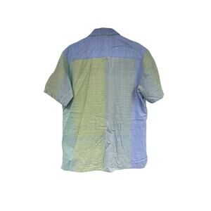 Neeru Kumar Short Sleeve Button Up Shirt Green Blue Colorblock Men’s XL?