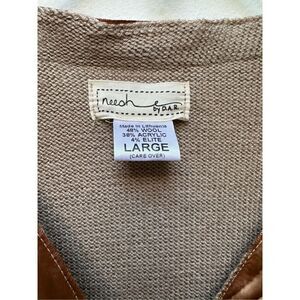 Neesh by DAR women’s tan wool blend button cardigan silk trim size L #45-1385