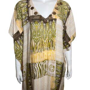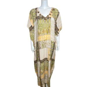 Nefertiti Collection African Kaftan Muu Muu Maxi Dress Rayon V Neck One Size