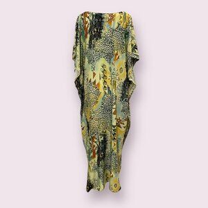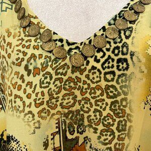 Nefertiti Collection Boho Tribal Caftan Dress One Size Leopard Print Festival