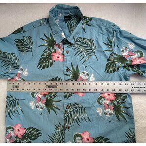 Neff Disney Hawaiian Shirt Mens Medium Blue Mickey Mouse Floral Button Up Camp