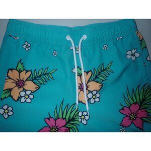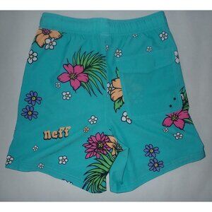 Neff Floral Board Shorts Mens M blue Unlined Smiley Logo Pockets NWOT
