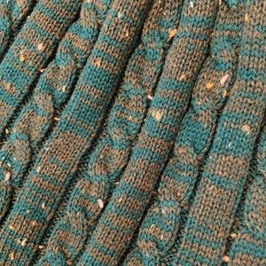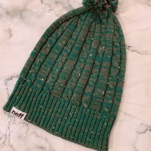 Worn once. In perfect condition. One size. Hat is green with blue and white speckles.