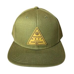 Neff Khaki Green Cap with Custom Goods Triangle Patch, SnapBack Unisex. Neff cap in khaki green. Features a bold triangle patch on the front. Excellent condition like new, please review all photos for overall condition. One size fits most.