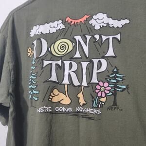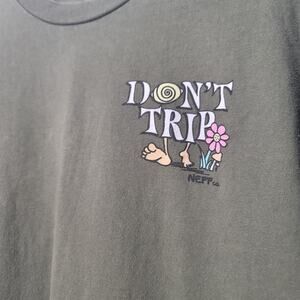 Neff Mens Green Don't Trip Short Sleeve T-Shirt Size Large Mushroom Psychedelic