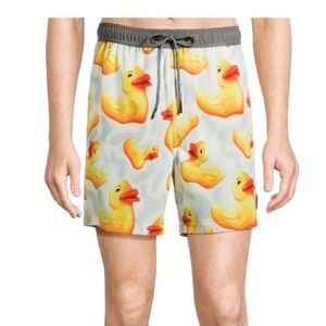 Neff Men's NWT Rubber Duck Print Swim Trunks Shorts Stretch 7" Inseam S Small