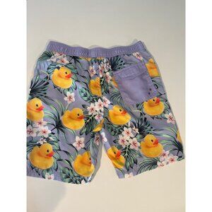 These swim shorts feature a playful rubber duck and floral design, ideal for casual beachwear or pool days. Lightweight and comfortable.
