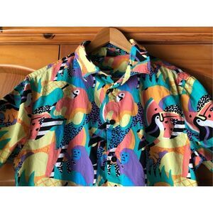Neff Men's Shirt Tropical Print Colorful Retro Monkey Bird Medium *