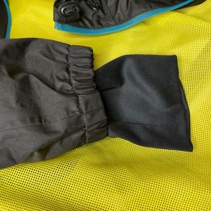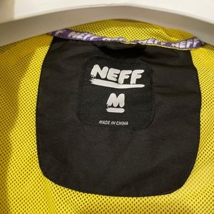 Neff seam sealed jacket with welded front zippers. Pit zips and a hood. In great condition. Free Neff Brodie sunglasses with purchase. Micro scratches on the lens. I bought this here for my son and he wore it once. Excellent condition. Waterproof.