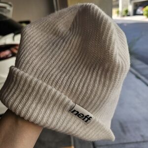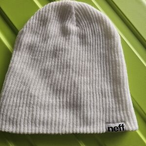Neff White Ribbed Beanie
