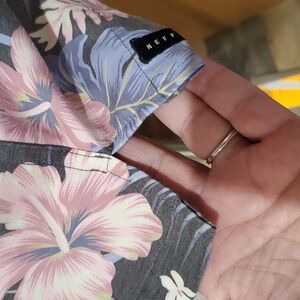 tropical floral fern bird of paradise print purples and pinks on grey excellent condition no fabric tag size medium by Neff