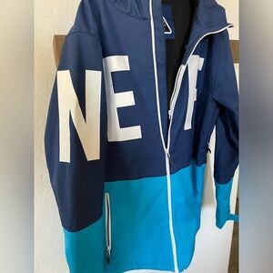 Neff|Bold letter logo Colorblock ski jacket, men’s size XL•••Blue & white
