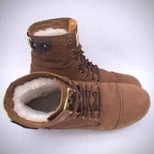 Negash Brown Leather Boots Size 9 - Rugged & Stylish with Shearling Lining