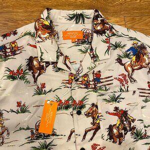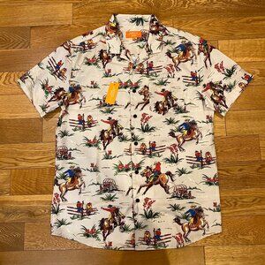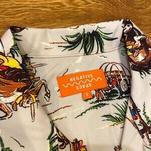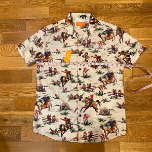 Negative Space Cowboy Western Wagon Horse Button Down Shirt Mens Small AOP NWT