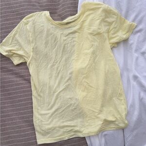 Light yellow ribbed crop short sleeve top by Negative. Soft stretch fabric. Simple scoop neckline. Great layering piece. Neon yellow so transparent. I think I only tried on and never actually wore