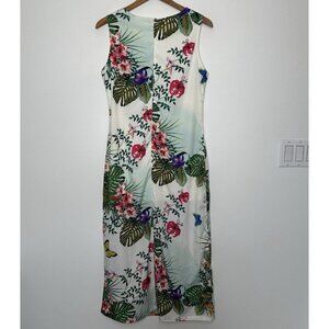 Neharsha Sleeveless Midi Dress Size M Butterfly Floral Tropical Slit Beach