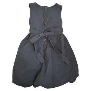 Charming charcoal gray pinafore dress with a playful bubble hemline and button side details. Made from soft, durable cotton-linen blend for comfort and movement. Perfect layered over tees or blouses for everyday wear, photos, or special occasions — a timeless, vintage-inspired style for little girls.