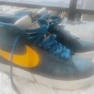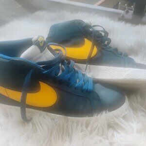 Neighbors 2 Zac Efron Nike Zoom Blazer Mid SB blue gold yellow Michigan fraternity Skateboard Shoes trainers sneaker men's size 9.5 tag 631042-470