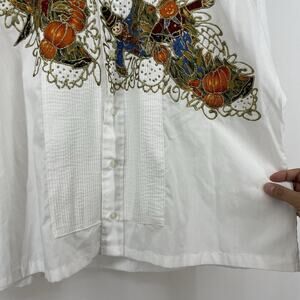 Neil Allyn Size L 32/33 Halloween Tuxedo Shirt Canvas Pumpkins Scarecrow Gold