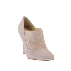 These covered stiletto heel wedge booties are super sexy in a lizard embossed leather and suede vamp in a neutral dune color. Brand new in original box. Features: * Embossed leather upper with suede vamp * Almond toe * 4" heel * Leather lining * Leather insole and outsole * Includes dustbag * Made in Italy